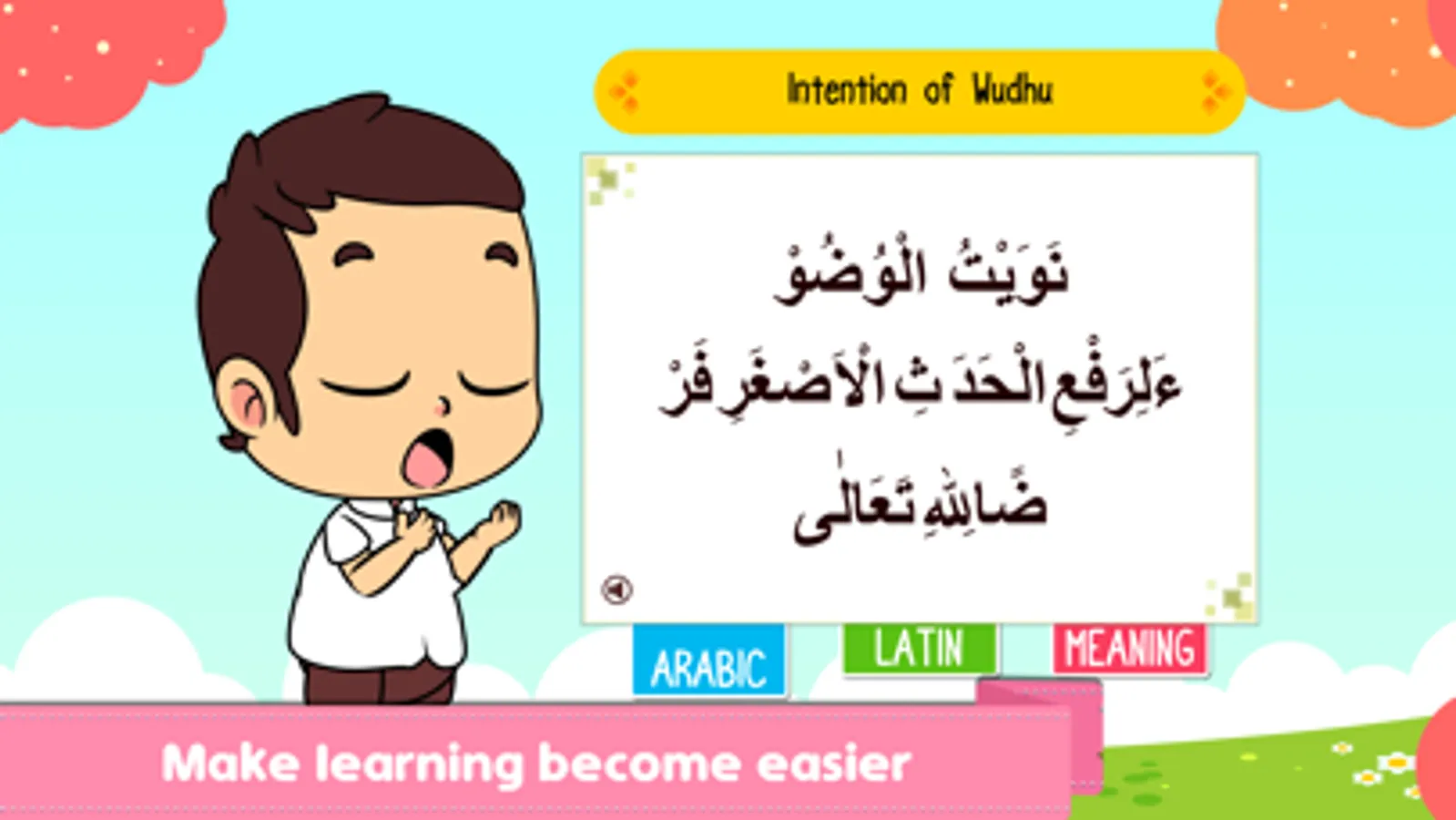 Marbel Learning Ablution is an educational application for children aged 4-8 years. This application helps children learn how to perform ablution. With Marbel Learning ablution, children can learn the sequence of each ablution movement along with the ablution prayer and prayer after ablution. This application is equipped with supporting narratives which are very useful for children who are not yet fluent in reading. Each material is equipped with narration, so children can learn just by listening to the sound. After they finish learning the Koran, there are various kinds of exciting games waiting for them. Through this game, their knowledge and learning outcomes can be tested.