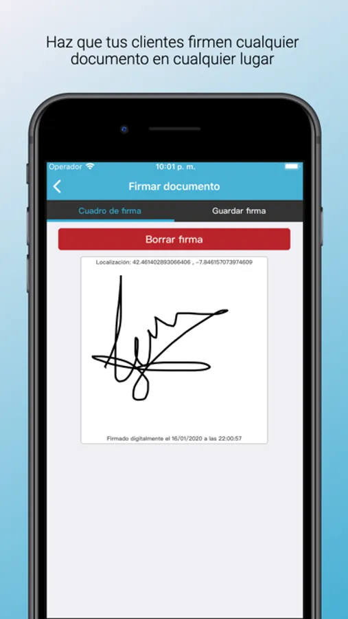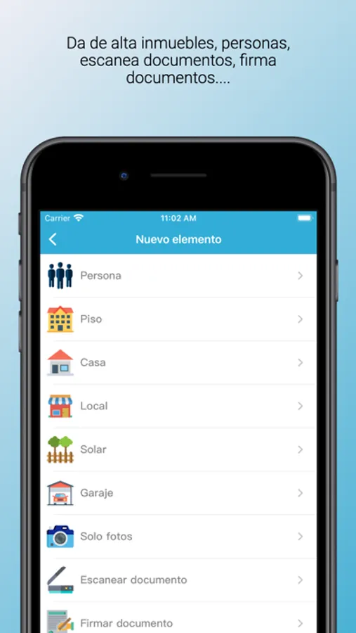 También permite firmar cualquier tipo de documento que la agencia haya creado previamente, o escanear mediante la cámara del dispositivo cualquier documento y enviarlo a la oficina