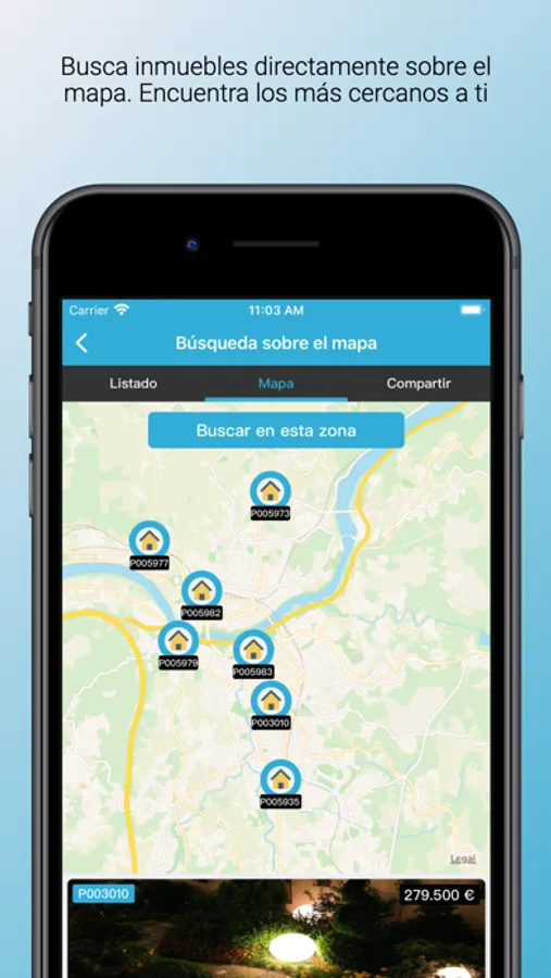 ◆ Buscar dentro de tu cartera de inmuebles, aquellos que cumplen unos criterios marcados o aquellos que está más cerca de tu ubicación actual