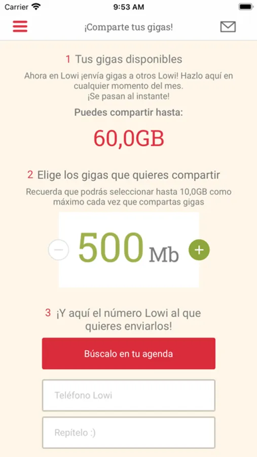 La app Mi Lowi te permite realizar cambios o consultas de una manera simple, ágil e intuitiva, además, ¡puedes compartir gigas con tus amigos!