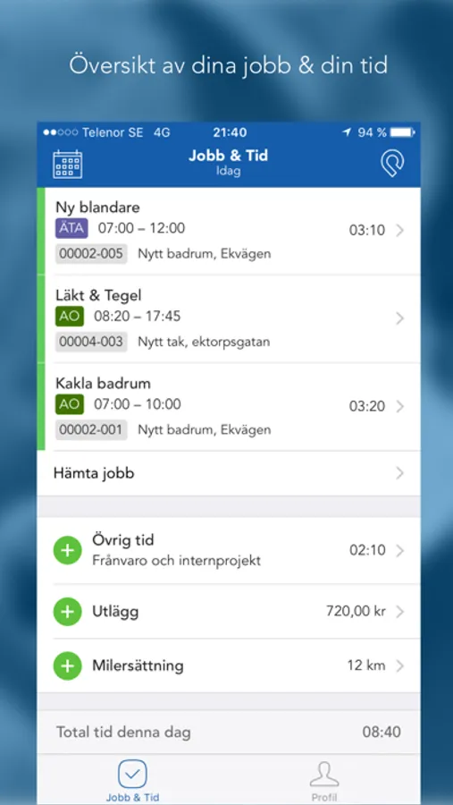 - Skapa överskådliga rapporter och fakturaunderlag med timmar, material, leverantörsfakturor m.m.