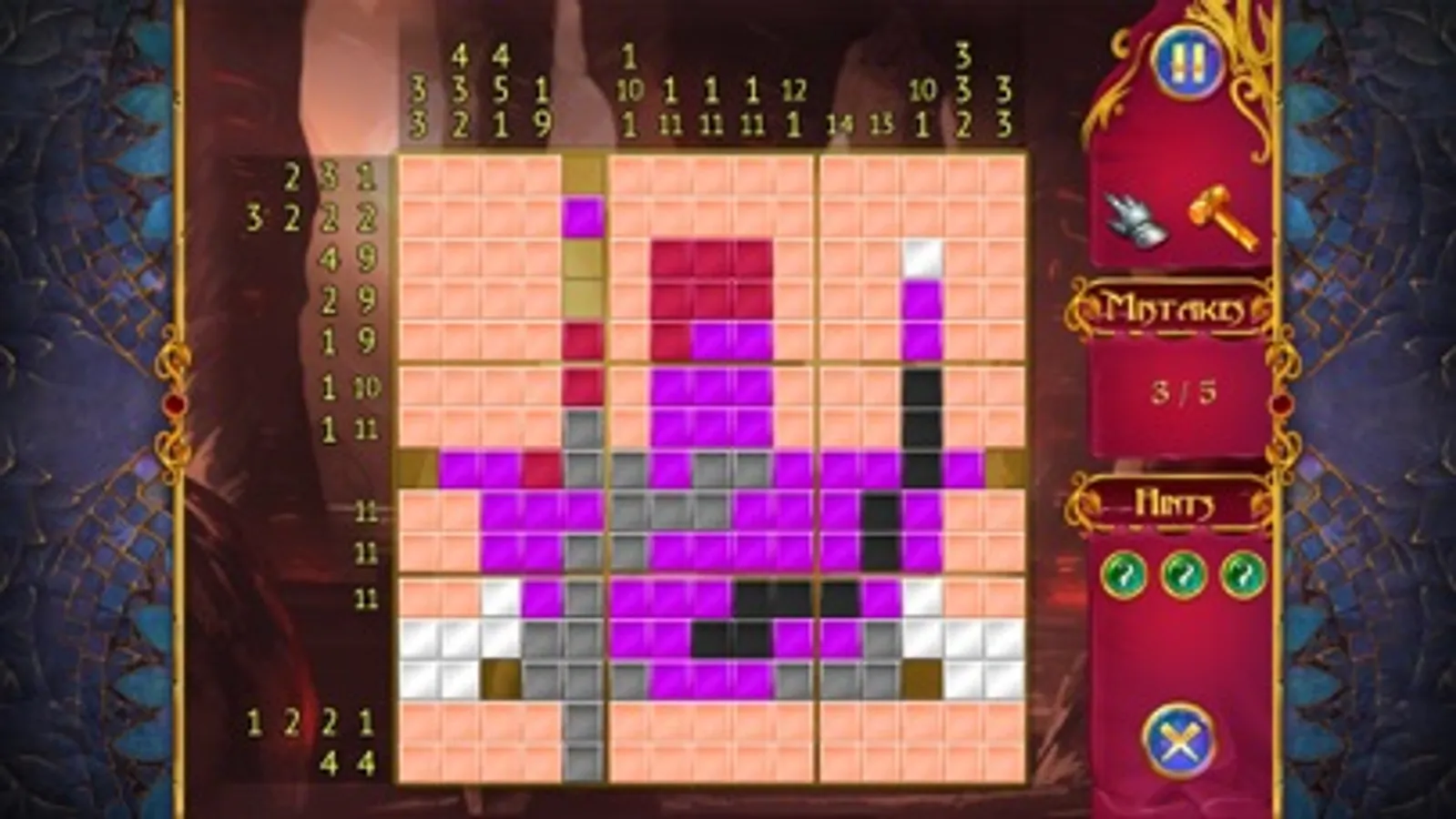 Mystery Mosaics features two modes of play - Pick-a-Pix and Fill-a-Pix - each with 100 challenging levels. Travel across the land, visiting exotic locales and learning the lore of the realm as you work to unravel the puzzles and crack the secrets of the Mosaics. Beautifully painted, high-resolution backgrounds and ever-increasing challenge await you along the way.