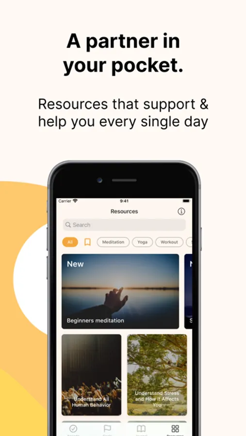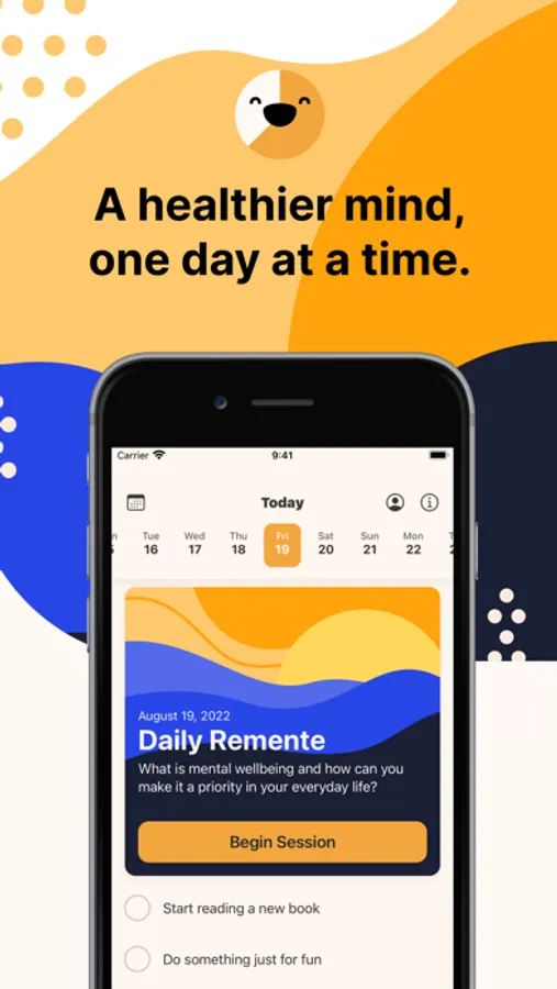 A daily video session with a life coach explaining different concepts of self care and interactive guides for users to learn about and practice mental health and well being.