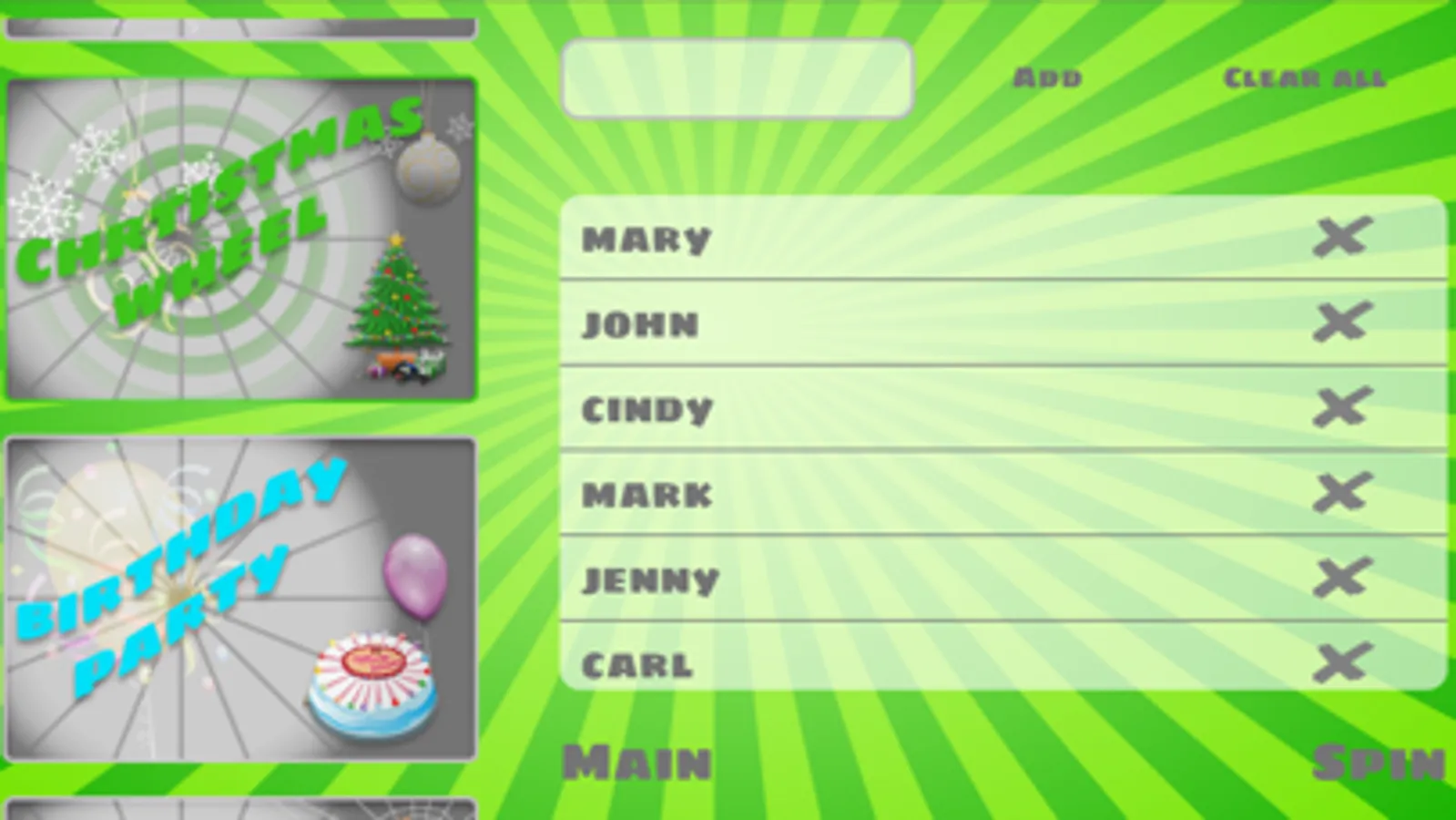Choose from four different templates: Everyday Fortune, Christmas Wheel, Birthday Party and Halloween Misfortune. Every template has a set of fun sounds to go with it.