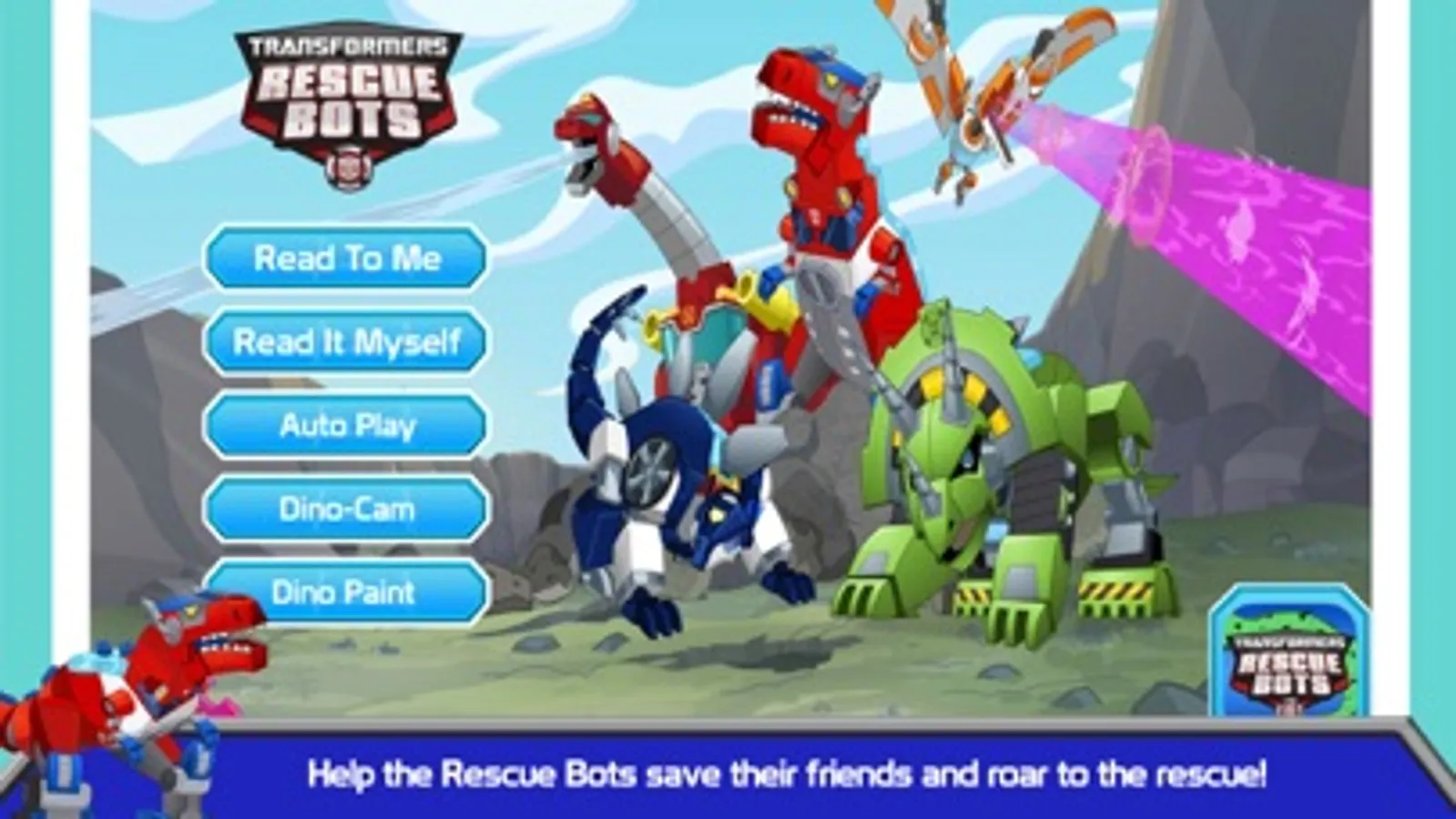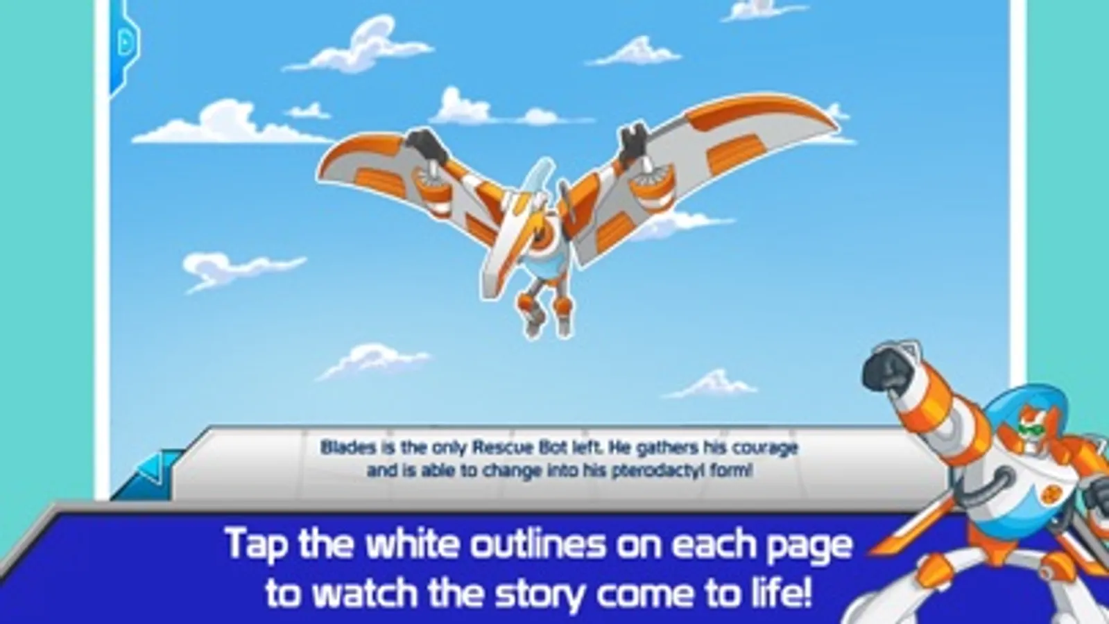 The Rescue Dinos have arrived! Two friends of Griffin Rock Rescue, Professor Baranova and Frankie Greene, have gone missing on a mysterious island, but conniving and greedy Colonel Quarry, the only person who knows where to find them, is refusing to help! The latest TRANSFORMERS RESCUE BOTS interactive storybook app, based on the hit animated series, suits up the reader as the Rescue Team’s newest cadet and puts them at the center of the action, working with the Rescue Bots to save their friends and “roar to the rescue” in their new dinosaur forms!