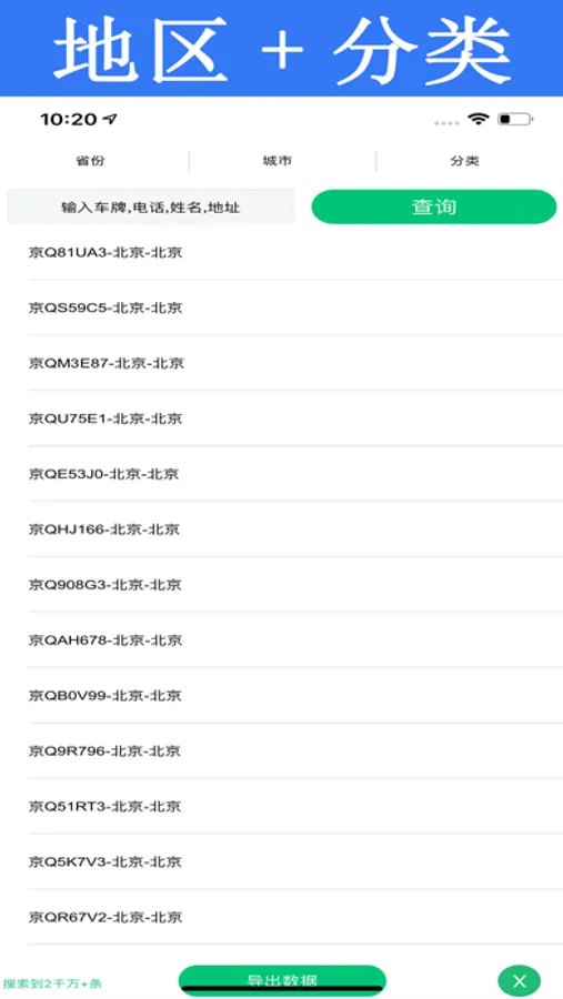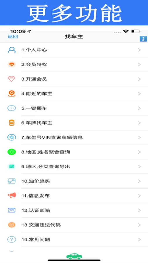 车主或车辆档案信息查询,全国4亿+汽车数据,百万认证车主用户,车架号VIN查询分析,附近加油站油价查询,油价分析,一键快速挪车,自定义文字联系车主。