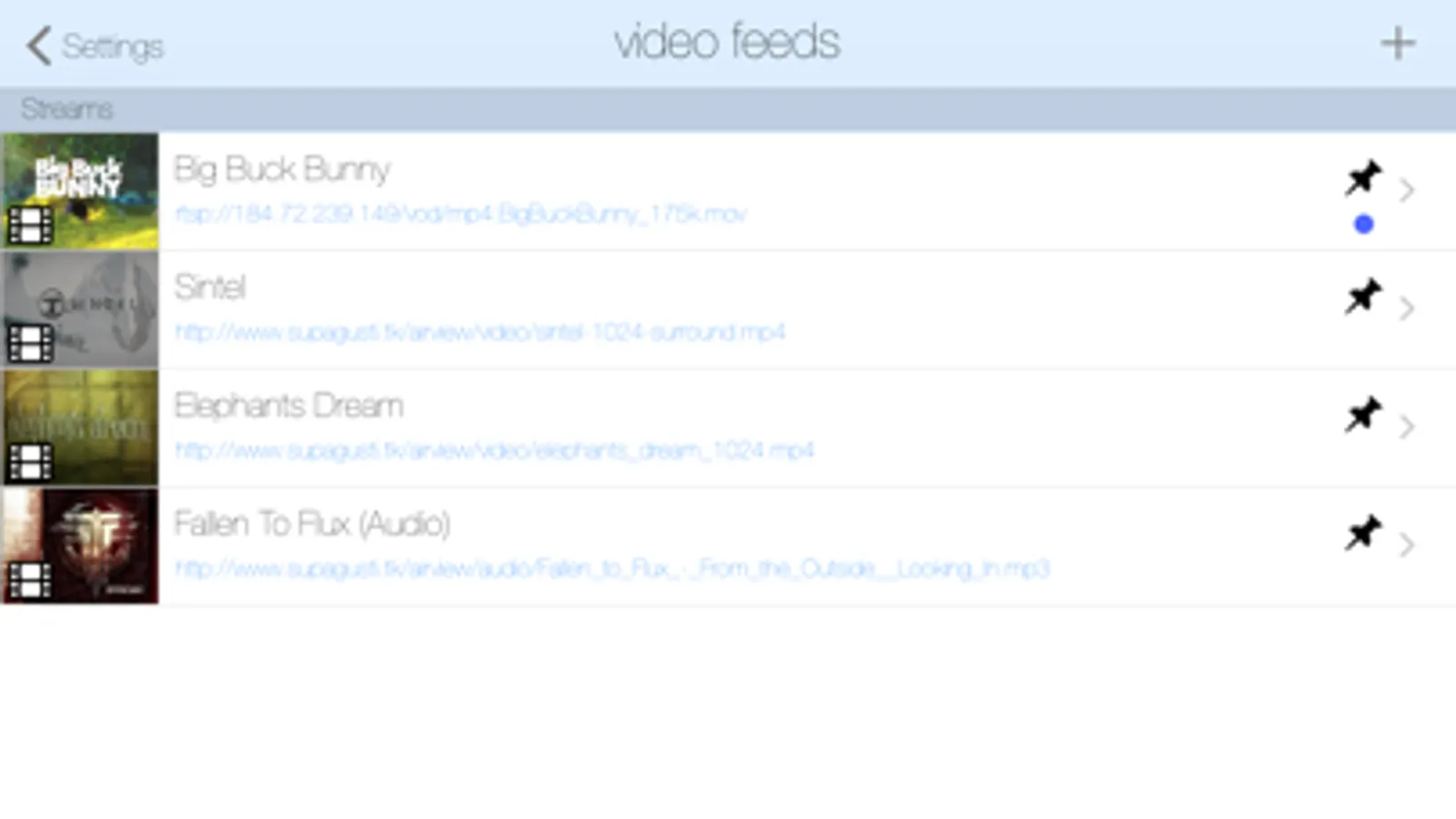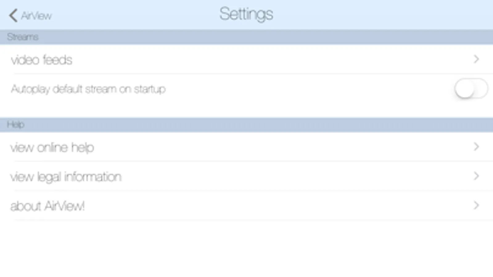 But you can use AirView also for streaming video from several other sources to your iPhone. Free sample video feeds are shipped with your app. There are several configuration options to fit your needs. As AirView! is based on FFmpeg it supports video over various transport ways such as: http, https, mms, mmsh, rtmp, rtsp and much more.