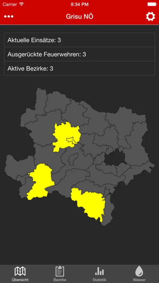 * Niederösterreich-Karte zum Überblick von laufenden Einsätzen