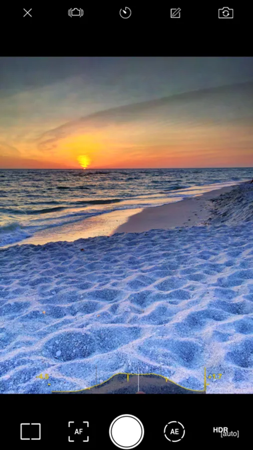 By taking advantage of the new burst mode in iOS 8, Fusion takes three bracketed exposures in 3/10ths of a second. The brackets can be automatically calculated based on algorithmic analysis of the scene, or manually specified. Exposure can be locked using a spot meter mode similar to a DSLR and can also be manually adjusted. A histogram gives you the technical info you need.