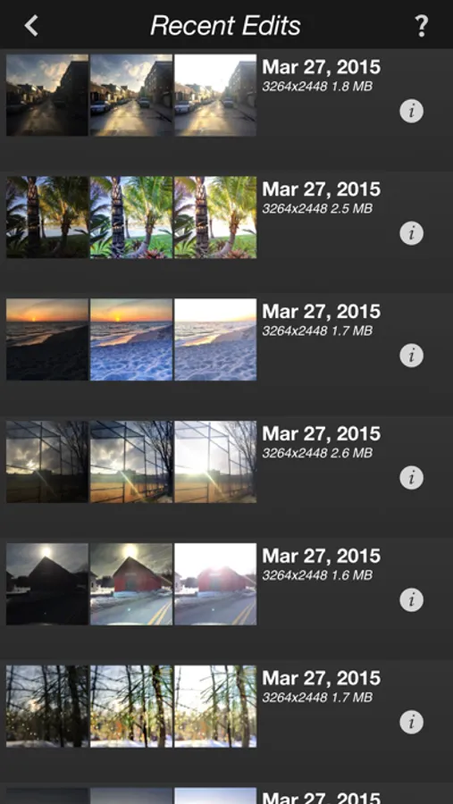 The session list stores the bracketed photos as you shoot and allows you to go back and re-open sessions for editing.