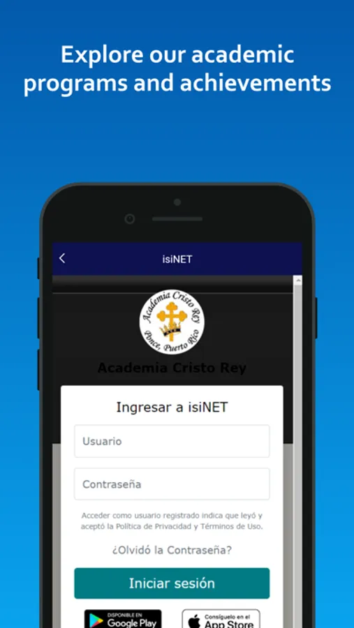 La Academia Cristo Rey es un colegio católico ubicado en Ponce, Puerto Rico que ofrece un currículo de formación cristiana y académica integral desde Pre-Kinder hasta Duodécimo Grado. Provee una educación de excelencia académica, que promueva un espíritu de caridad, justicia social y conciencia global con un currículo retador que desarrolle la curiosidad intelectual del estudiante y le permita alcanzar sus metas personales para desenvolverse en la sociedad actual. Descarga nuestra aplicación móvil para que obtengas más información.