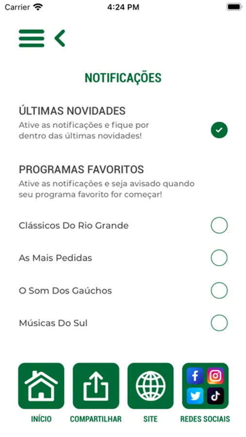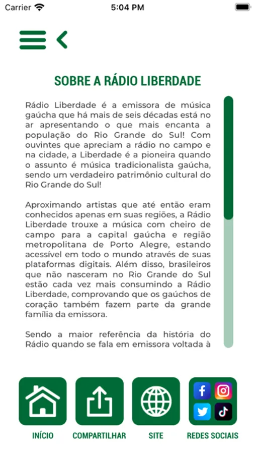 Aplicativo da Rádio Liberdade, uma emissora da Rede Pampa de Comunicação.