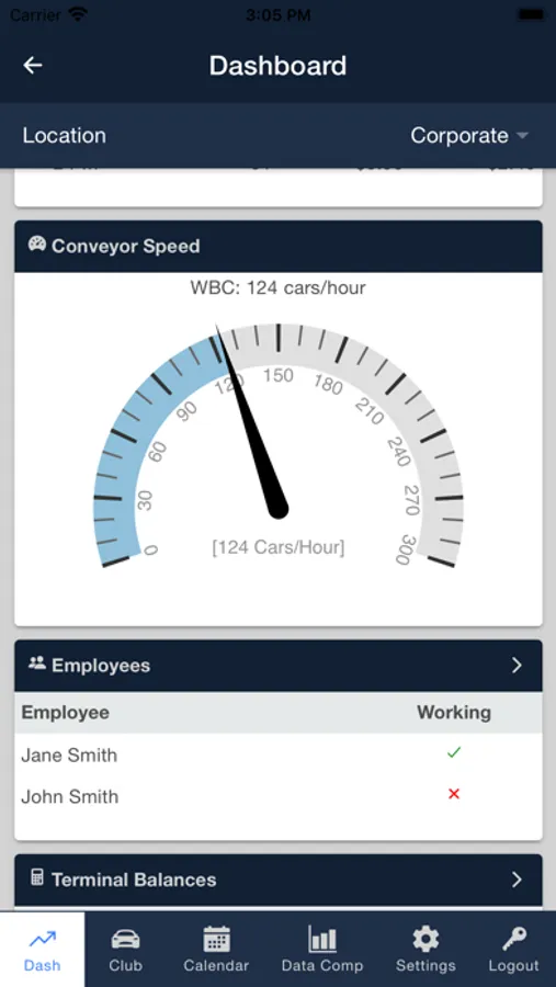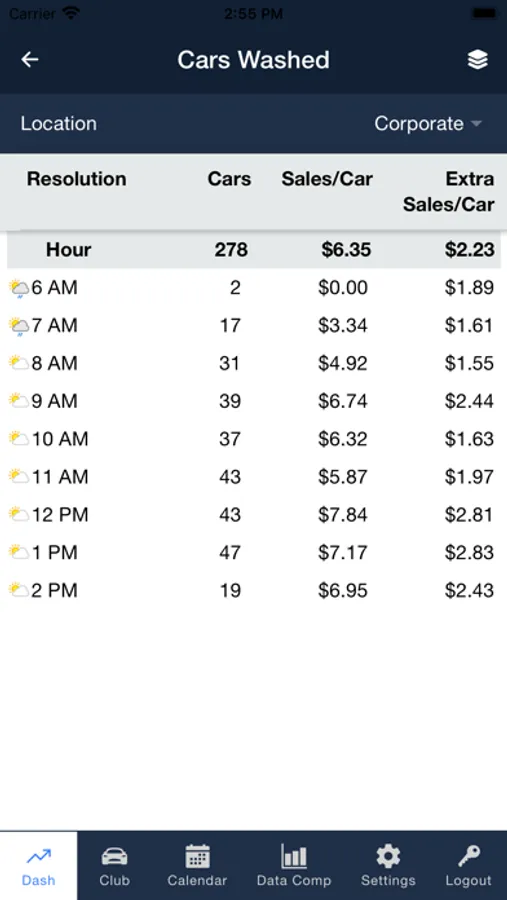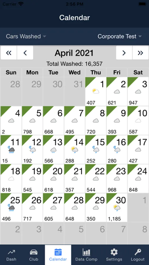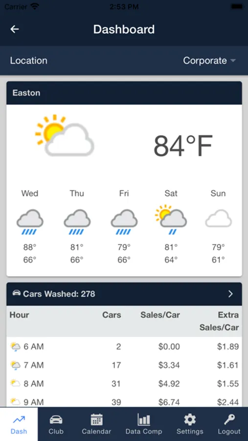 WashConnect® Mobile App is a management portal that offers ICS customers access to view financial reports. The reports that can be accessed include, Cars Washed, Employees Working, Employees Not Working, Terminal Balances, Labor Cost, Sales Distribution and Comparison Data for different date ranges, The Mobile App also gives weather information on each of the site with forecast for the next five days and an aggregate of cars washed for the month on a calendar.