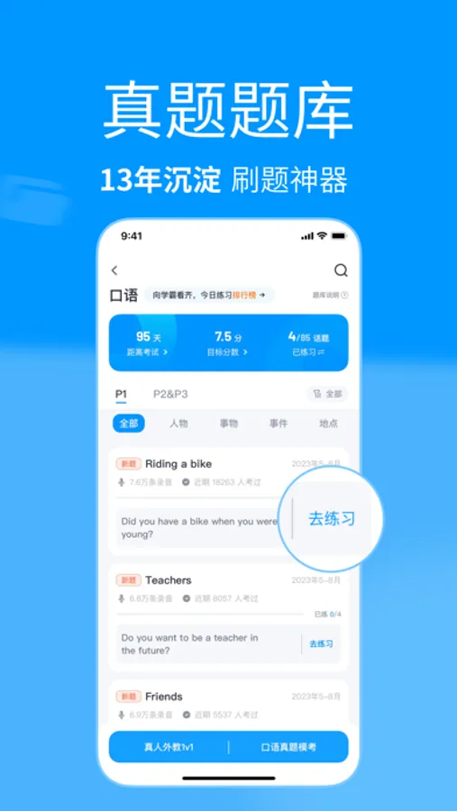 雅思哥十二年题库沉淀,按试卷、题型、话题、情景帮你做好分类,择需练习,有的放矢,随时随地免费刷题!