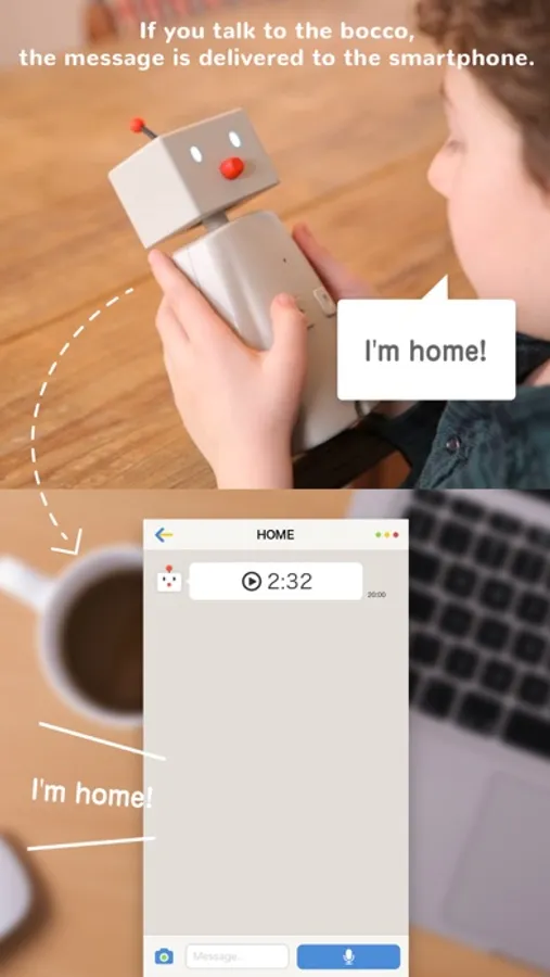 A voice message recorded by BOCCO can be played by the BOCCO app. Because of the
