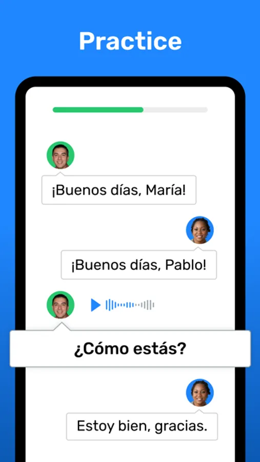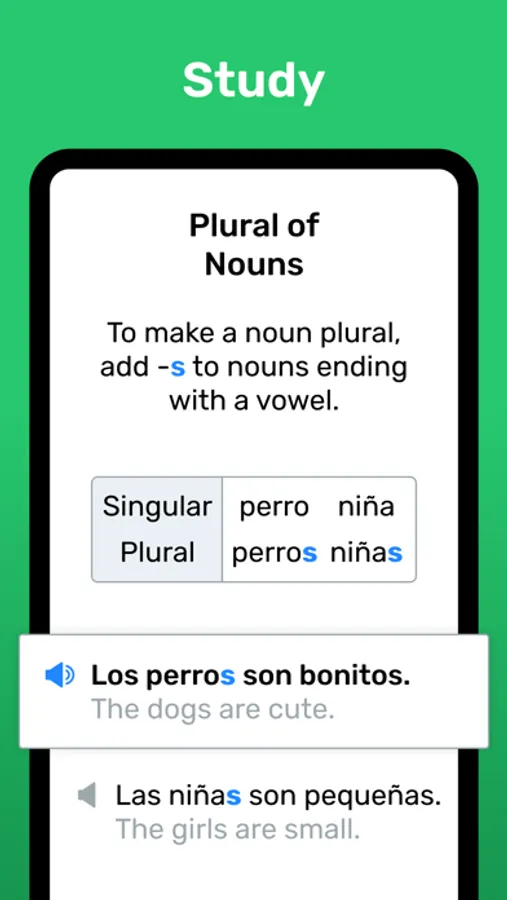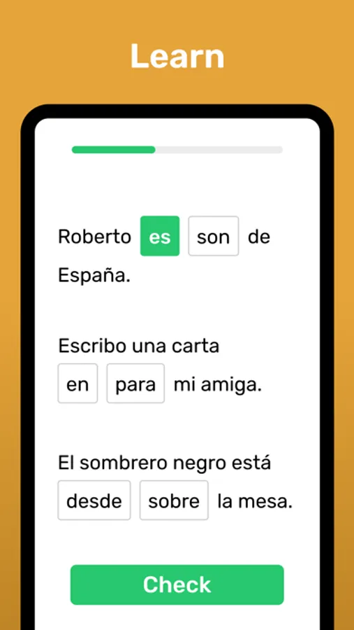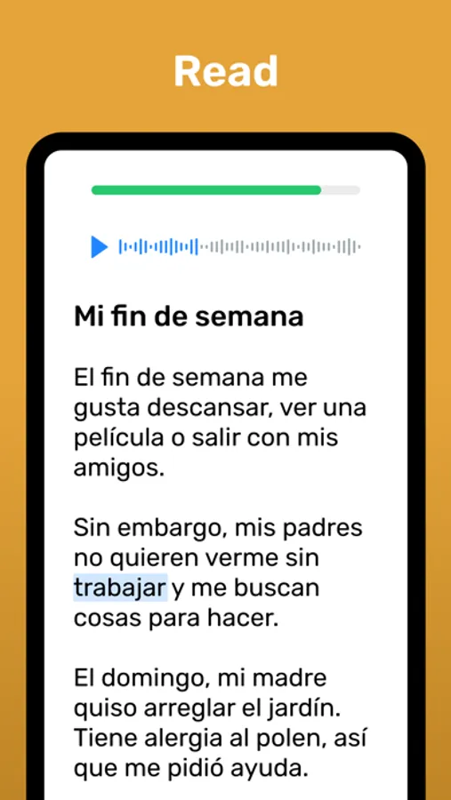 A learning process designed for you that is both easy and guided: You’ll feel like you’re learning more and more Spanish every day. Every sentence, exercise, review, and reading has been carefully selected for you.