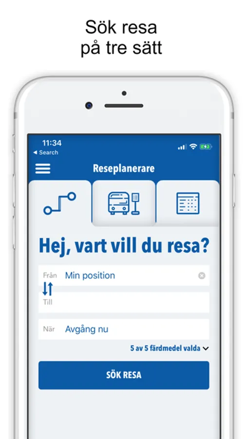 Reseplaneraren hjälper dig att söka och köpa bästa resan mellan A och B.