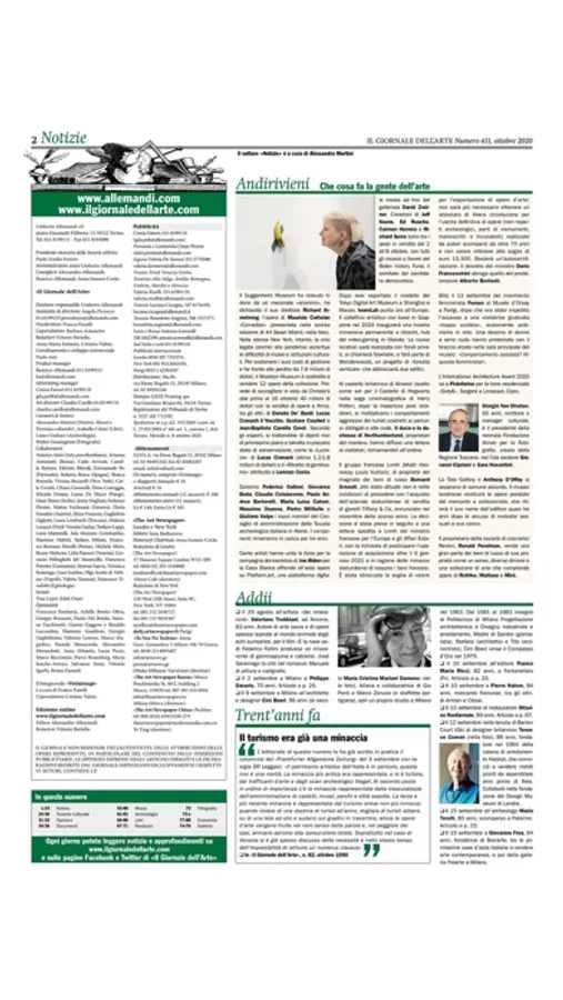 Nel 1983 usciva in Italia il numero 1 di «Il Giornale dell'Arte», il primo «giornale» al mondo concepito esattamente come un quotidiano, ma di periodicità mensile, dedicato esclusivamente alle notizie del mondo artistico. «Il Giornale dell'Arte» seleziona il meglio che l'arte ogni mese ci offre in tutto il mondo, per rendere più bella la nostra vita. Attraverso una rete fittissima di corrispondenti da tutto il mondo, si occupa degli avvenimenti, delle persone, dei luoghi, della politica, dell'economia e delle leggi che costituiscono l'attualità del mondo delle arti visive, rispettando la formula editoriale e i principi etici e qualitativi.