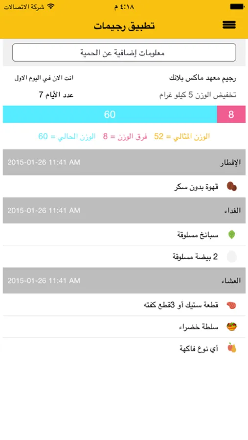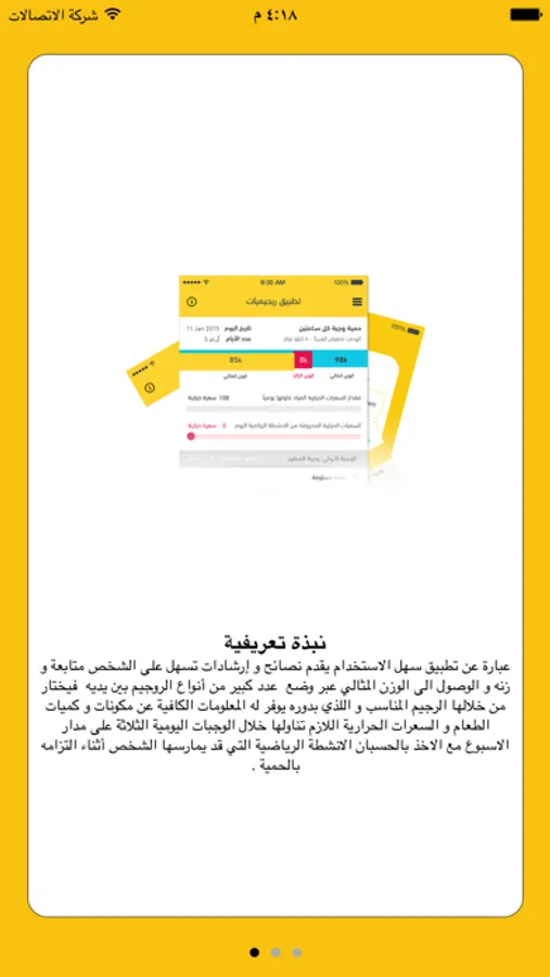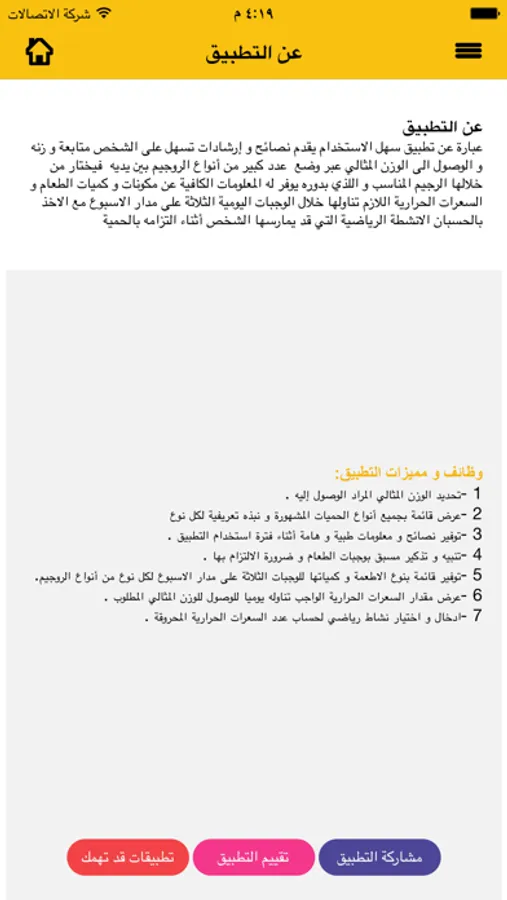 عبارة عن تطبيق سهل الاستخدام يقدم نصائح و إرشادات تسهل على الشخص متابعة و زنه و الوصول الى الوزن المثالي عبر وضع عدد كبير من أنواع الروجيم بين يديه فيختار من خلالها الرجيم المناسب و اللذي بدوره يوفر له المعلومات الكافية عن مكونات و كميات الطعام و السعرات الحرارية اللازم تناولها خلال الوجبات اليومية الثلاثة على مدار الاسبوع مع الاخذ بالحسبان الانشطة الرياضية التي قد يمارسها الشخص أثناء التزامه بالحمية