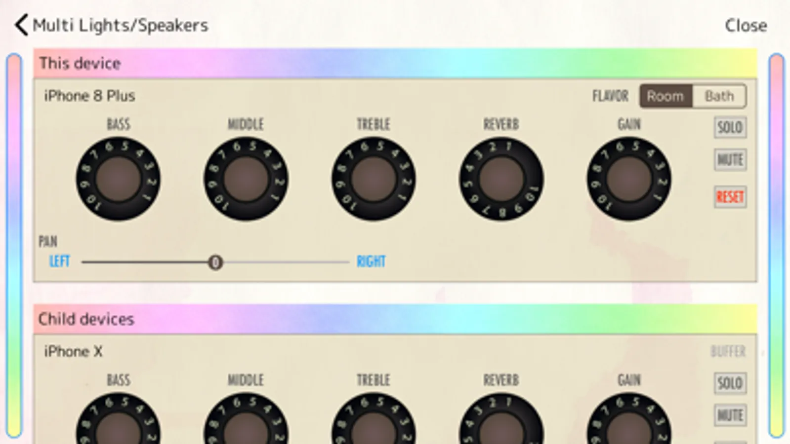 ・Multi lights / Multi speakers collaborate sound and light with multiple iPhones.