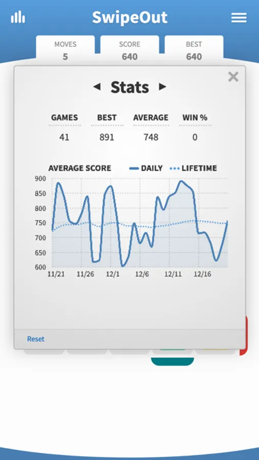 Track your top and average SwipeOut scores over time with our stats tracker.