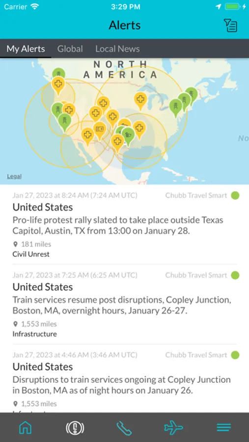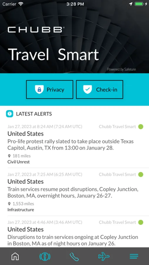The latest version of Chubb Travel Smart employs state of art information mining technology to enable swifter identification and communication of potential threats based on your location or planned destination. It aggregates and filters information from thousands of different sources globally, including news media, government institutions, security and health information databases and social media. All the information is reviewed and curated 24/7 by a team of experts to ensure accurate and timely alerts are pushed to you, helping you to stay safe and avoid trouble.