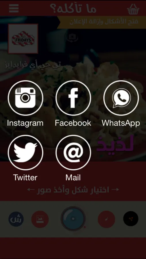 التقط صوره لطعامك، أضف شعار المطعم، راسل وشارك الصور مع اصدقائك