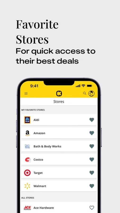 - The ability to select your favorite retailers and filter deals by store favorites