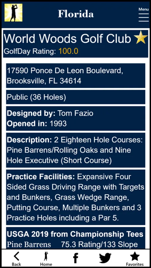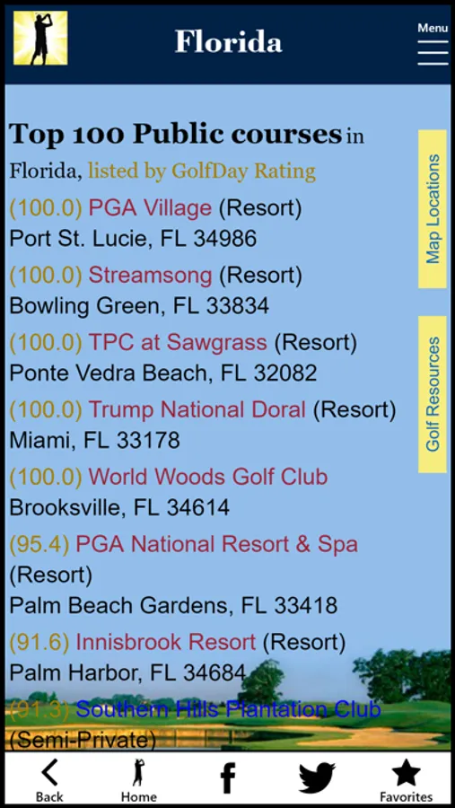 GolfDay Florida includes over 1,000 Florida golf courses, with a GolfDay Rating and proximity search making it easy to find a great track near you or where you plan to be. Listings also include rates, booking links, course detail, golf league and Junior golf information, mapping/directions and local weather. Don’t waste your valuable time at a Dog Track!