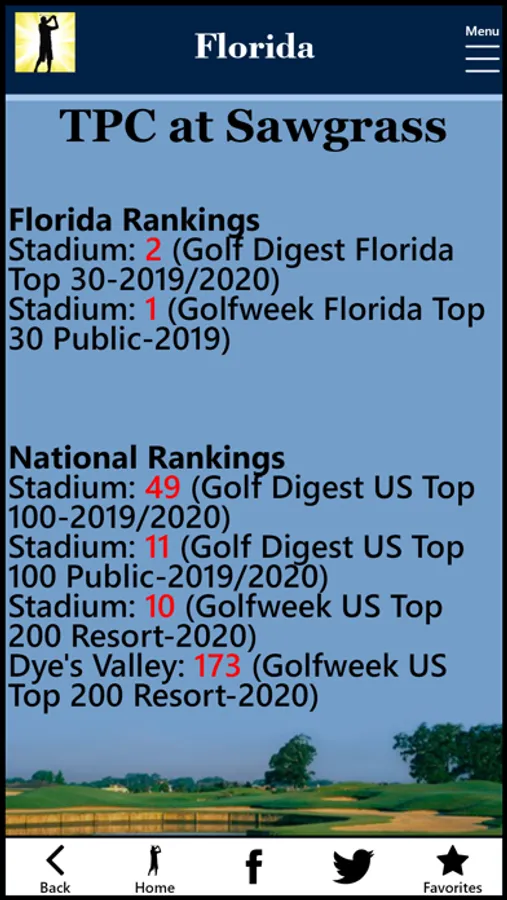 • Local and National Rankings by Golf Digest and Golfweek