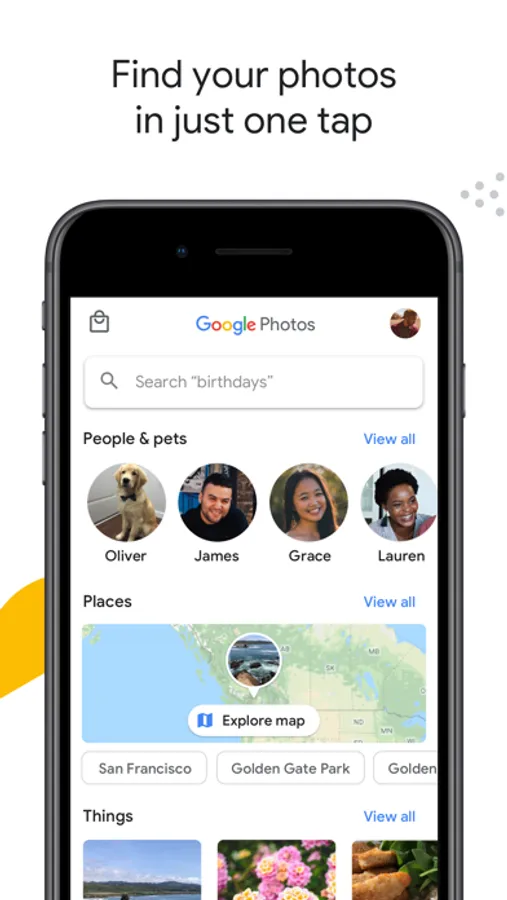 • FAST AND POWERFUL SEARCH: Your photos are now searchable by the people, places and things in them—no tagging required.