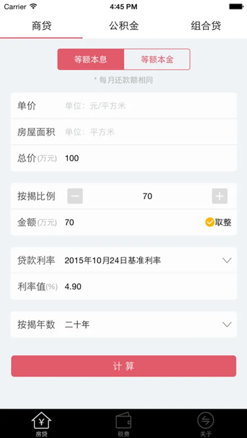 --支持等额本金、等额本息两种计算方式;