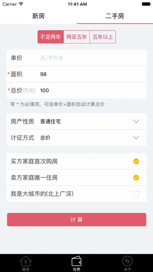 --支持计算买卖新房、二手房屋所需缴纳的各项交易税费。