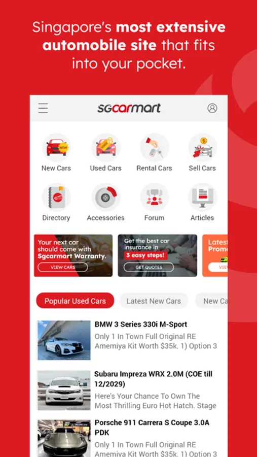 2. Used Cars - Complete with photos and pricing, sgCarMart.com possesses the largest and most comprehensive database of used cars in Singapore. It also provides daily updates of listings of all major used car dealers and their current car lists.