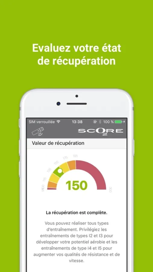L’application vous permet de connaître votre état de forme et votre récupération grâce à l’affichage de la mesure prise avec l’appareil O2score.