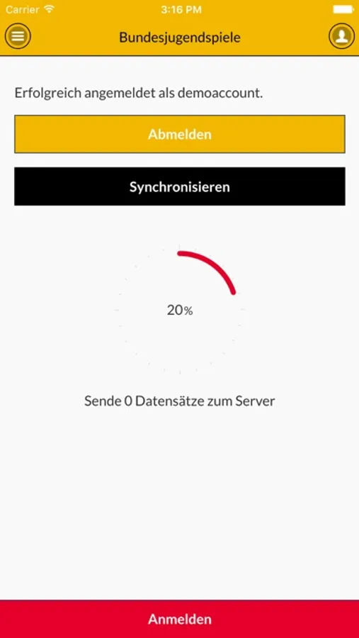 4. Führen Sie, nach dem erfolgreichen LogIn die Synchronisation mit Ihrem Account durch. Dabei werden alle Veranstaltungen, Schüler/innendaten etc. übertragen. Warten Sie bitte bis der Synchronisationsvorgang komplett abgeschlossen ist. (Nach der Synchronisation benötigen Sie für die Leistungseingabe keine Internetverbindung mehr).