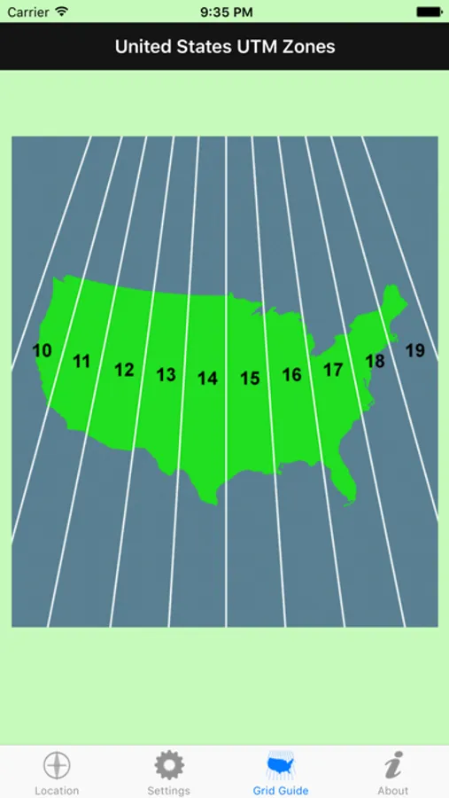 App will operate internationally. App includes a graphical guide to the United States (USA) UTM Zones.