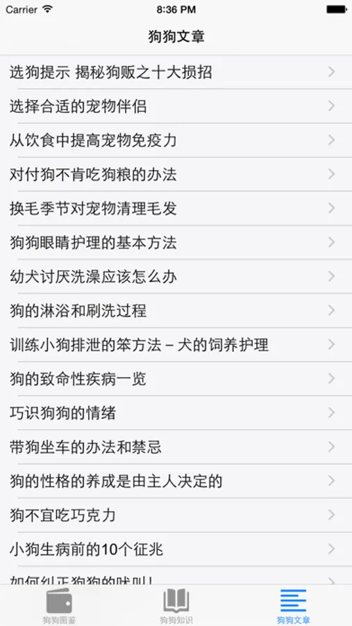 3、狗狗文章,精心收录了一些经典的狗狗文章,增进您对狗狗的认识