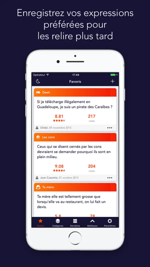 • Sauvegardez vos expressions favorites pour les relire plus tard, même sans internet !