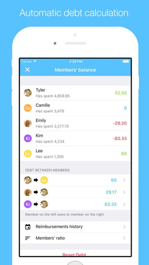 See Cospender's automatic calculation of each member's debt.