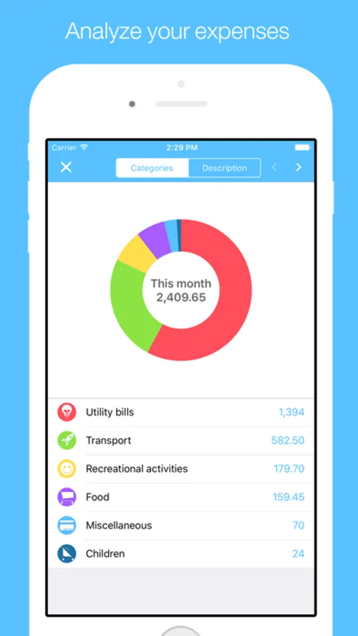 Follow your expenses every month through detailed graphs.