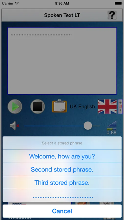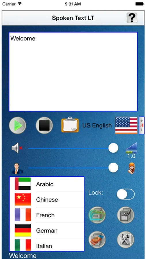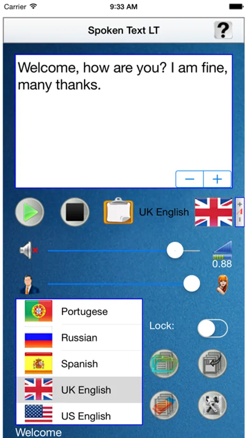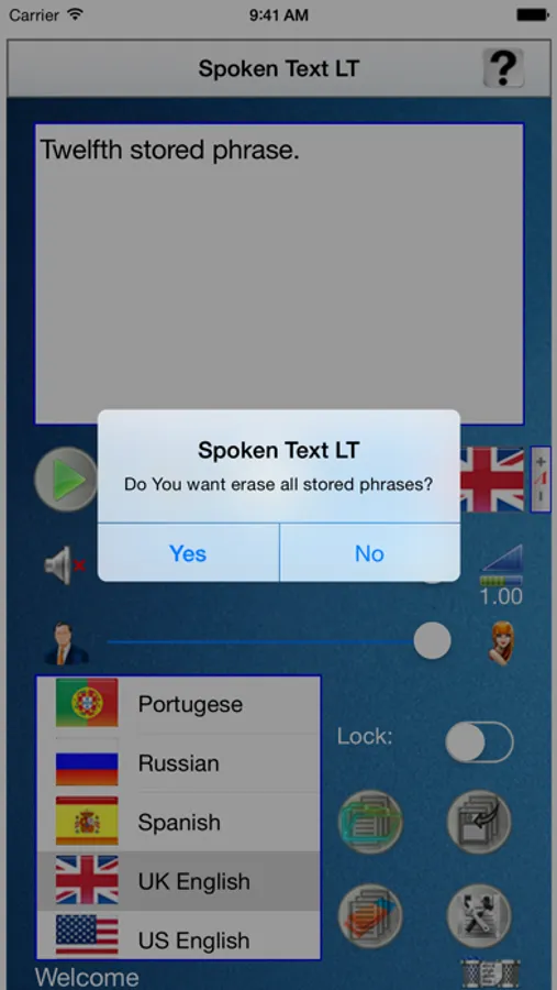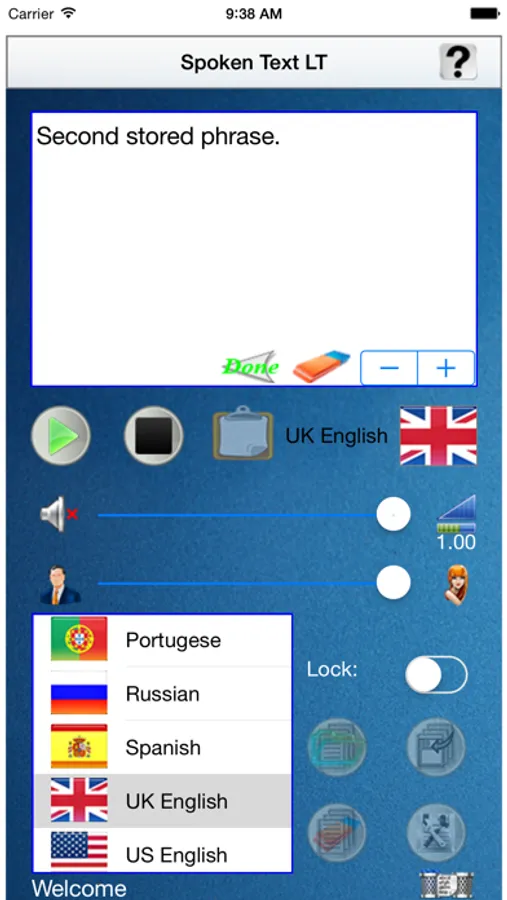 This compact tool is very useful, and practical, to speak, using the internal voice synthesizer of the used IOS device, every phrase written in his text editor. This app could be particularly useful for people with disabilities in speaking, this is the key reason because it has been developed. This tool could be useful also to learn the exact pronunciation of a chosen language, for example for a tourist during a travel/vacation in a foreign country. It is capable in synthesizing vocally any phrase, in 10 different languages, without using a data connection. At last is given also the possibility to store the written text, avoiding to write the same text when is requested to pronounce it again. The previously stored text, can be easily recalled with a preliminary preview, before to replace it with the one already present in the text editor.