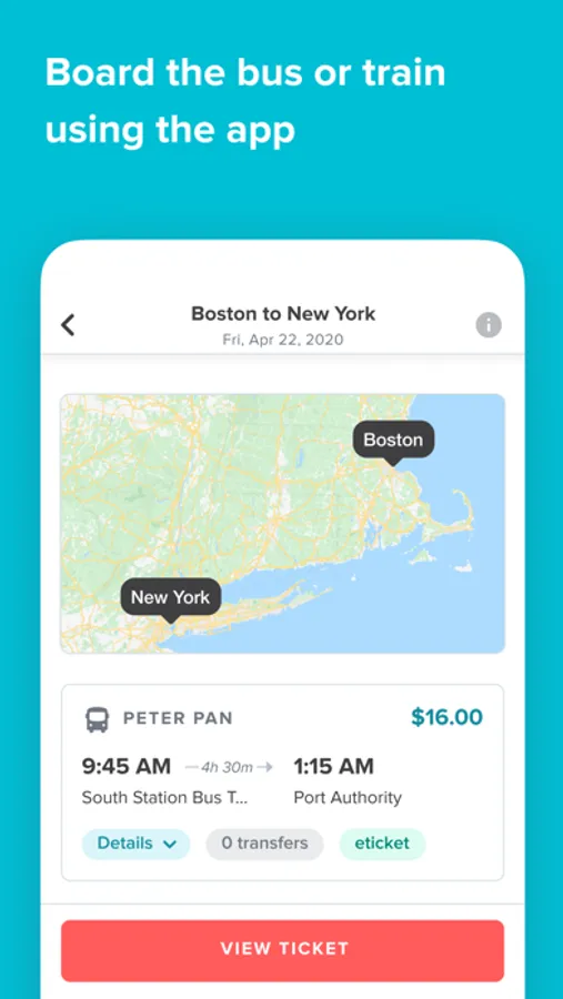 • Mobile boarding – Access your tickets and board the bus or train using the app with participating carriers.