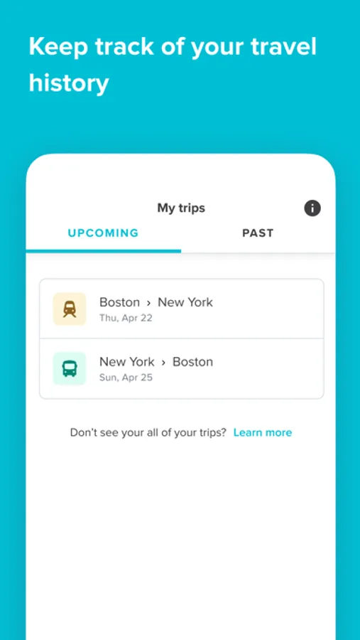 • Search tickets – Quickly search for buses and trains in the United States, Canada and Europe.