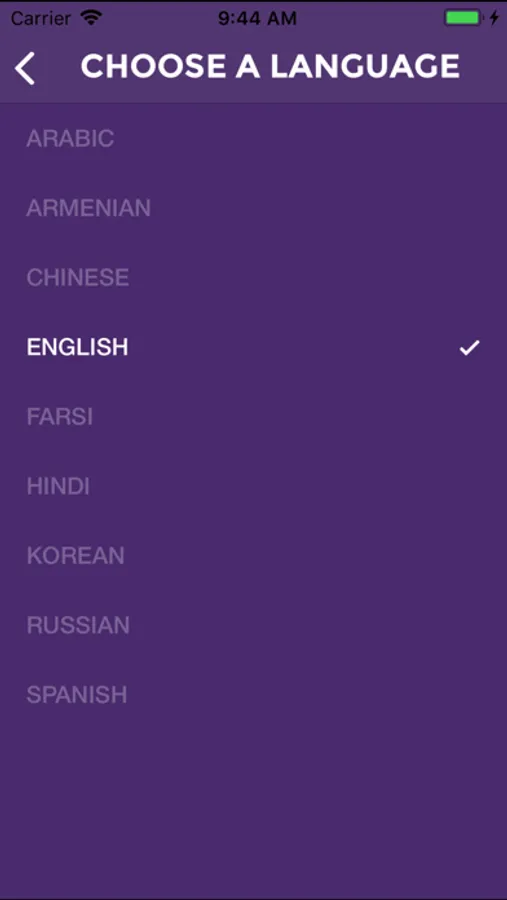 - Arabic, Armenian, Chinese, English, Farsi, Hindi, Korean, Russian and Spanish languages