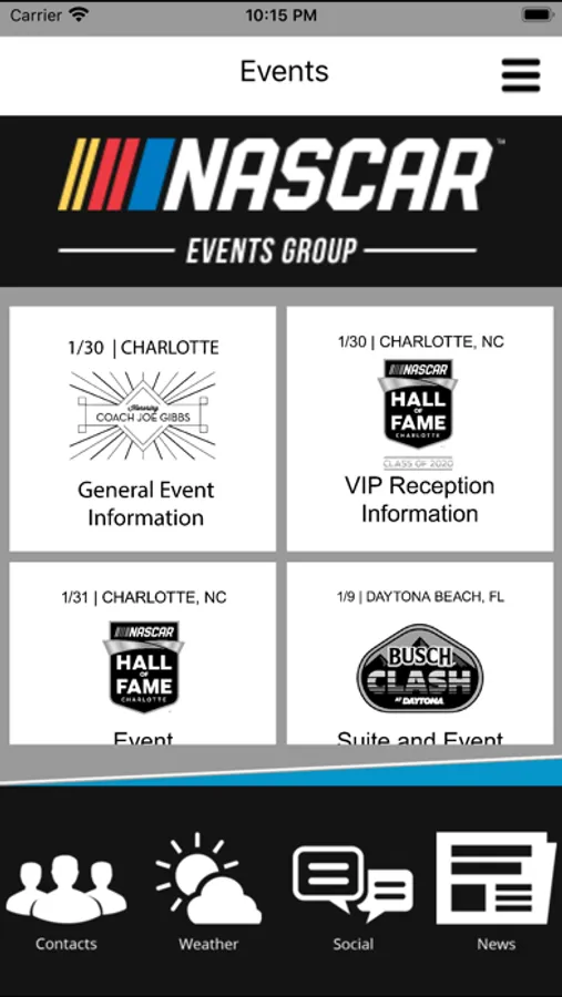 This app allows the NASCAR Executive Group to get up-to-date infrormation on services and events they are managing.