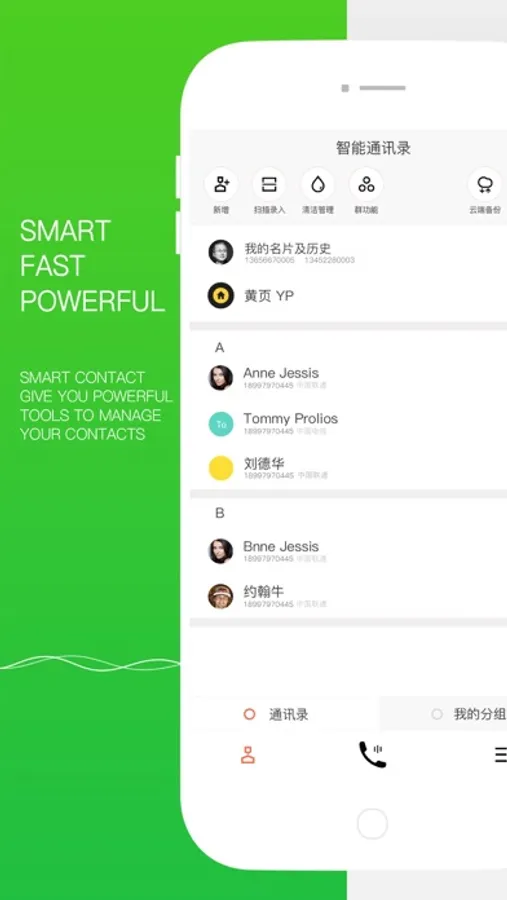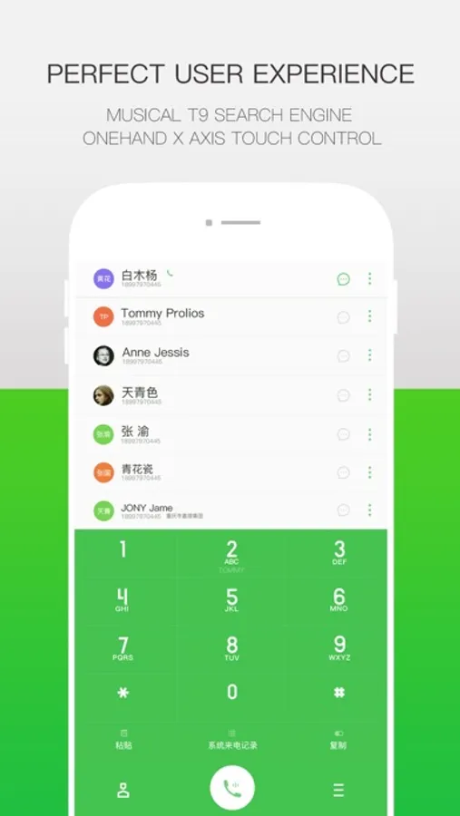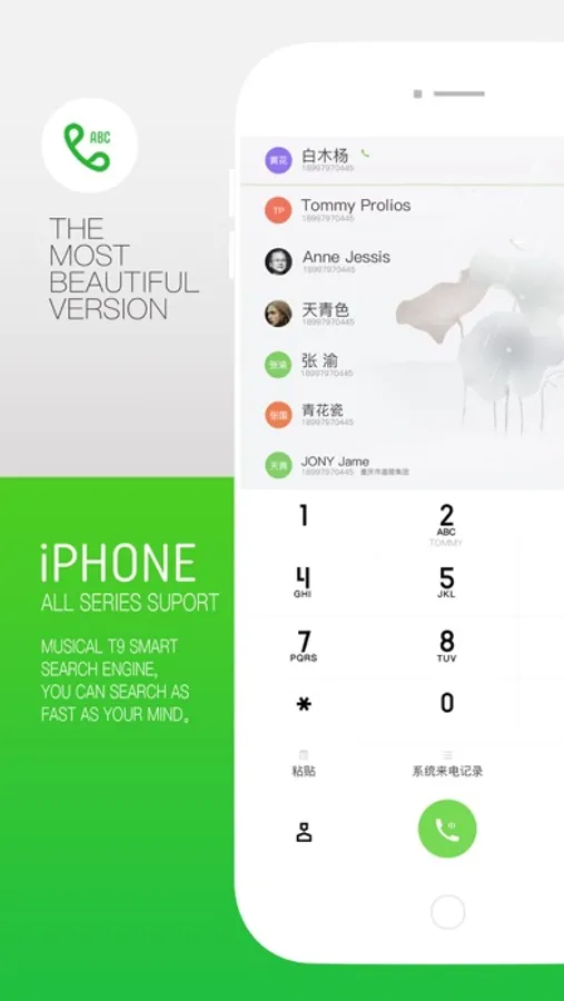 目前iPhone用户体验最佳的拨号软件电话助手;T9智能检索引擎急速性能,简单易用,可根据联系人名全拼、简拼、数字、字母、部分号段快速检索联系人,快速呼叫、播号、发短信、分享、添加合并联系人。