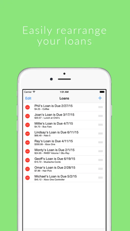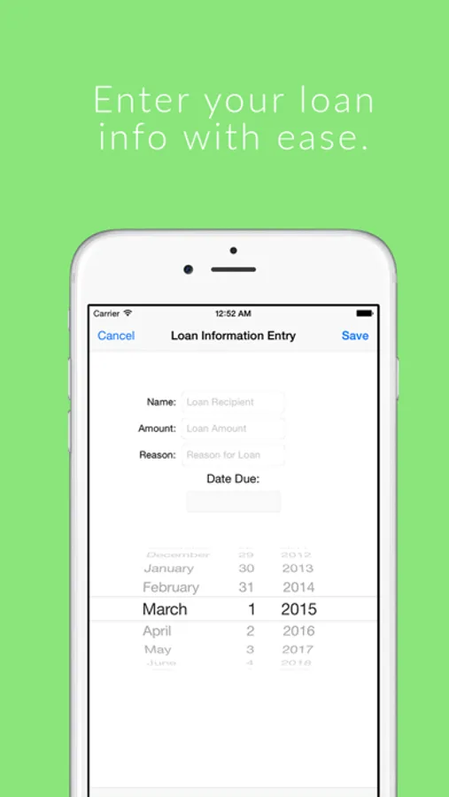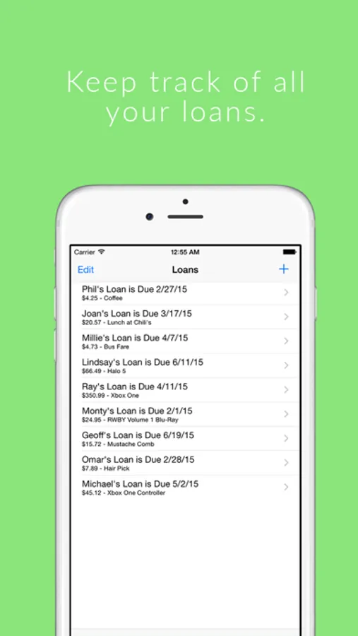 Simply input some simple information and iOU does the rest. iOU will keep track of your loans in a simple form. Make sure that you get all your money back with iOU!