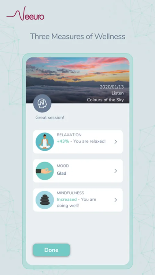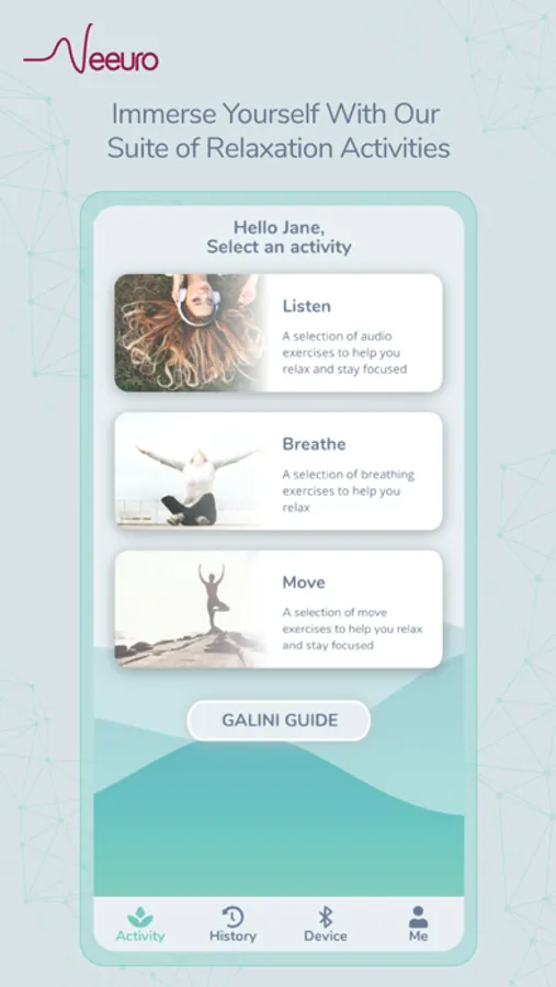 By tracking your relaxation, mood and mindfulness levels, Galini helps you understand your progress and optimize your training.
