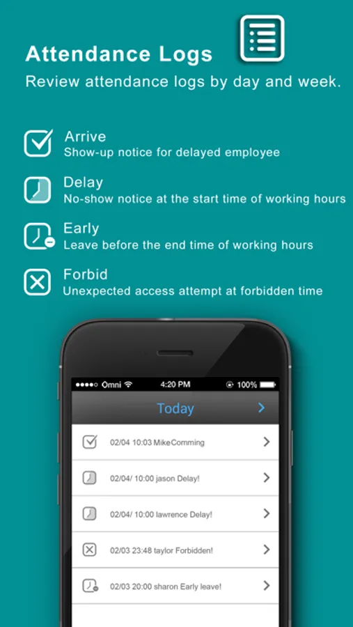 Users are able to check and be notified of the most up-to-date access record of each staff at anytime as long as this app is installed on their iOS device and Internet access is available on the device.